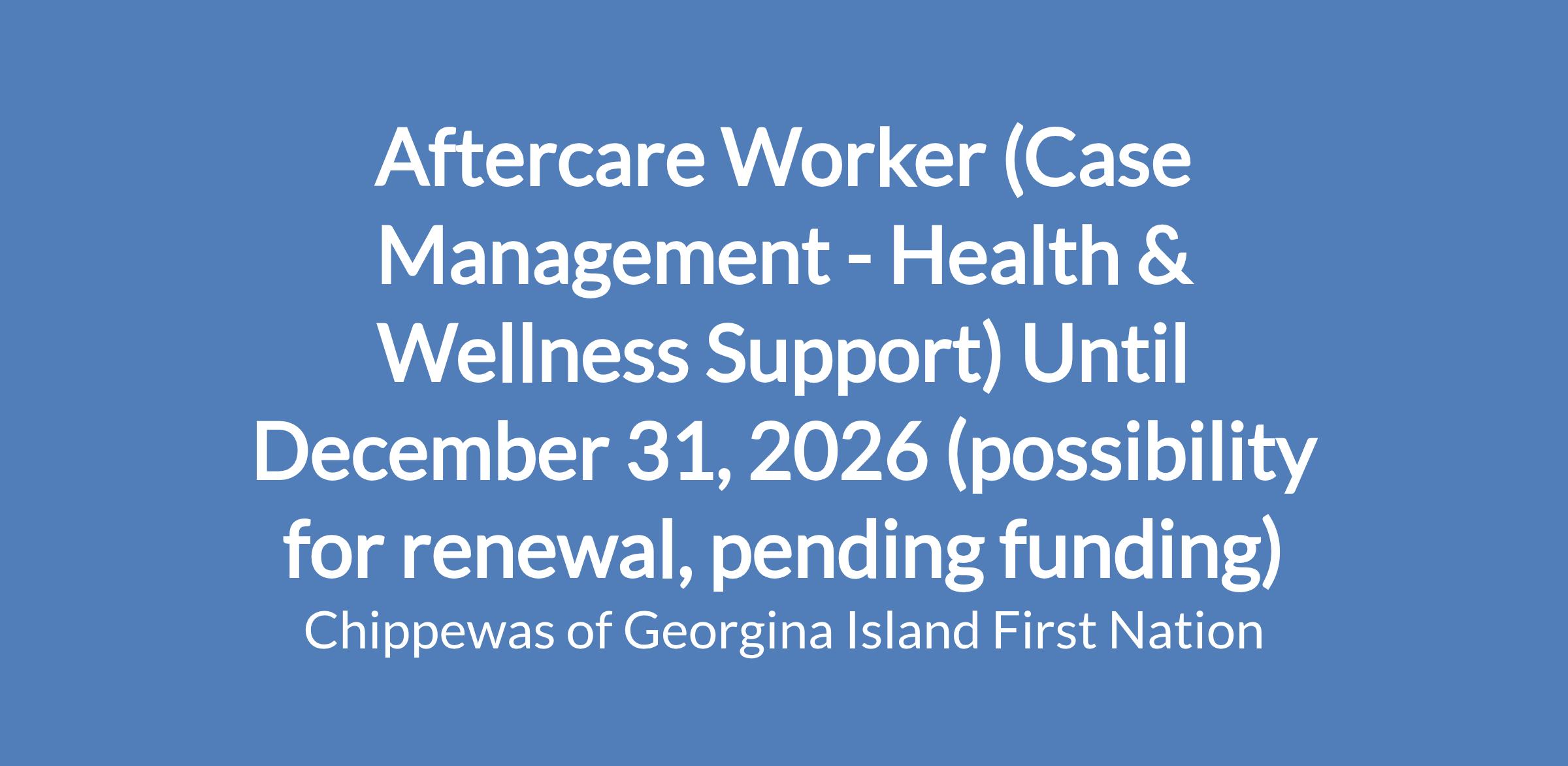 The Aftercare Worker will provide culturally informed, one on one support to individuals who have completed treatment programs and are reintegrating into the Georgina Island First Nation community. This role ensures clients receive ongoing assistance in stabilizing their health, wellness and social circumstances by helping them access holistic community support. The Aftercare Worker will use a case management approach, engaging clients, families and service providers to create personalized, goal-oriented support plans that promote long-term recovery and well-being.