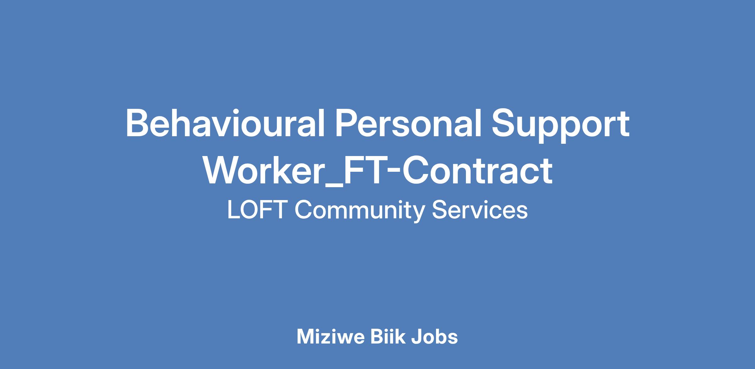 To help fulfill its mission, LOFT is hiring a Full Time Contract Behavioural Personal Support Worker.