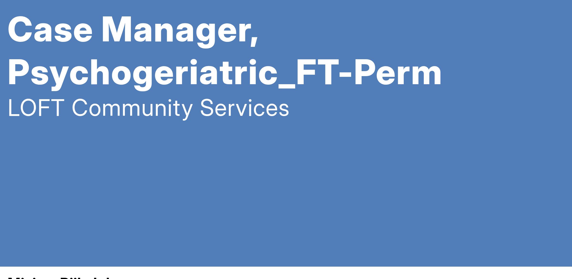 To help fulfill its mission, LOFT is hiring a Full-time Permanent Psychogeriatric Case Manager.