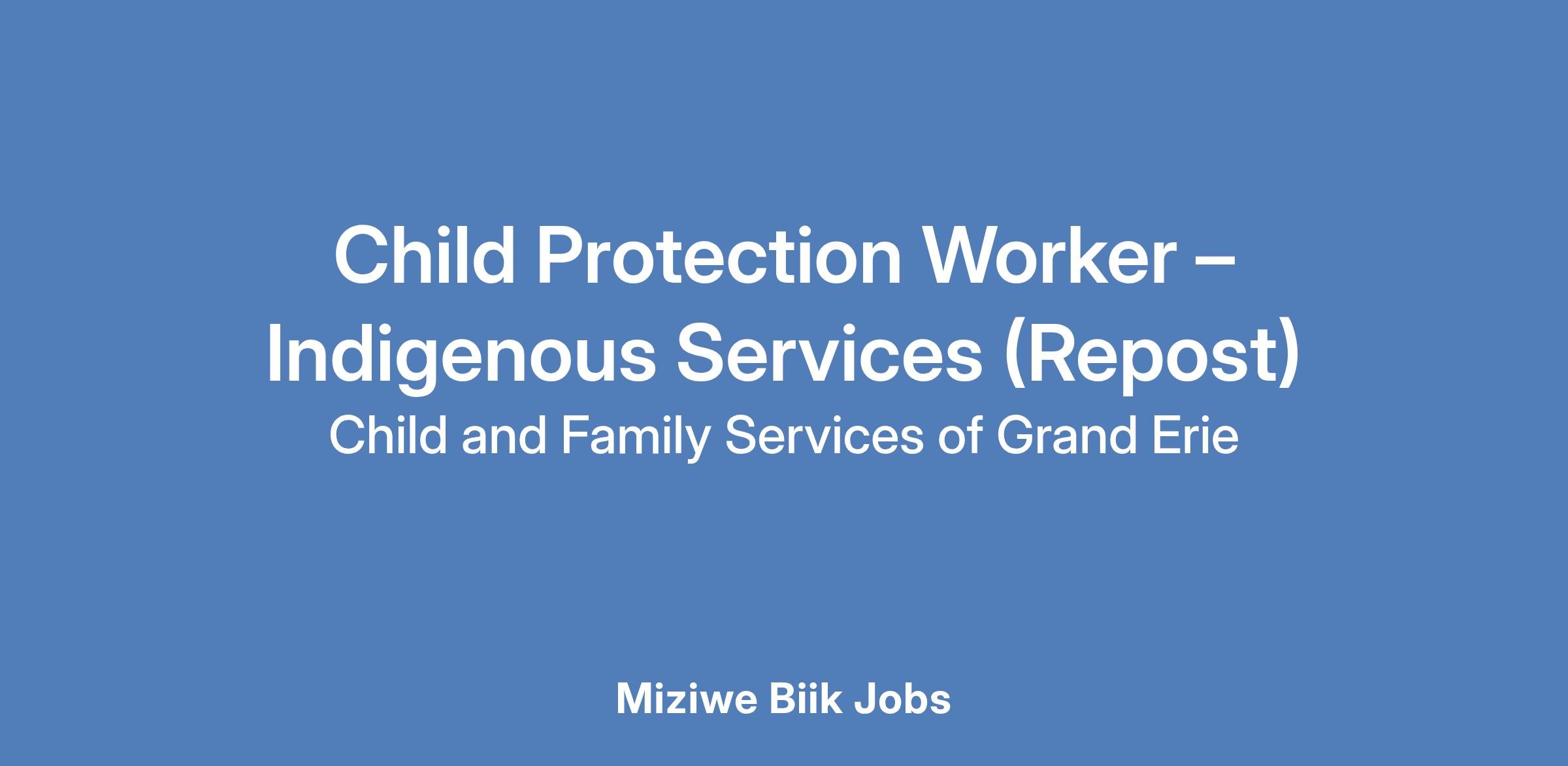 POSITION: Child Protection Worker – Indigenous Services (Repost)