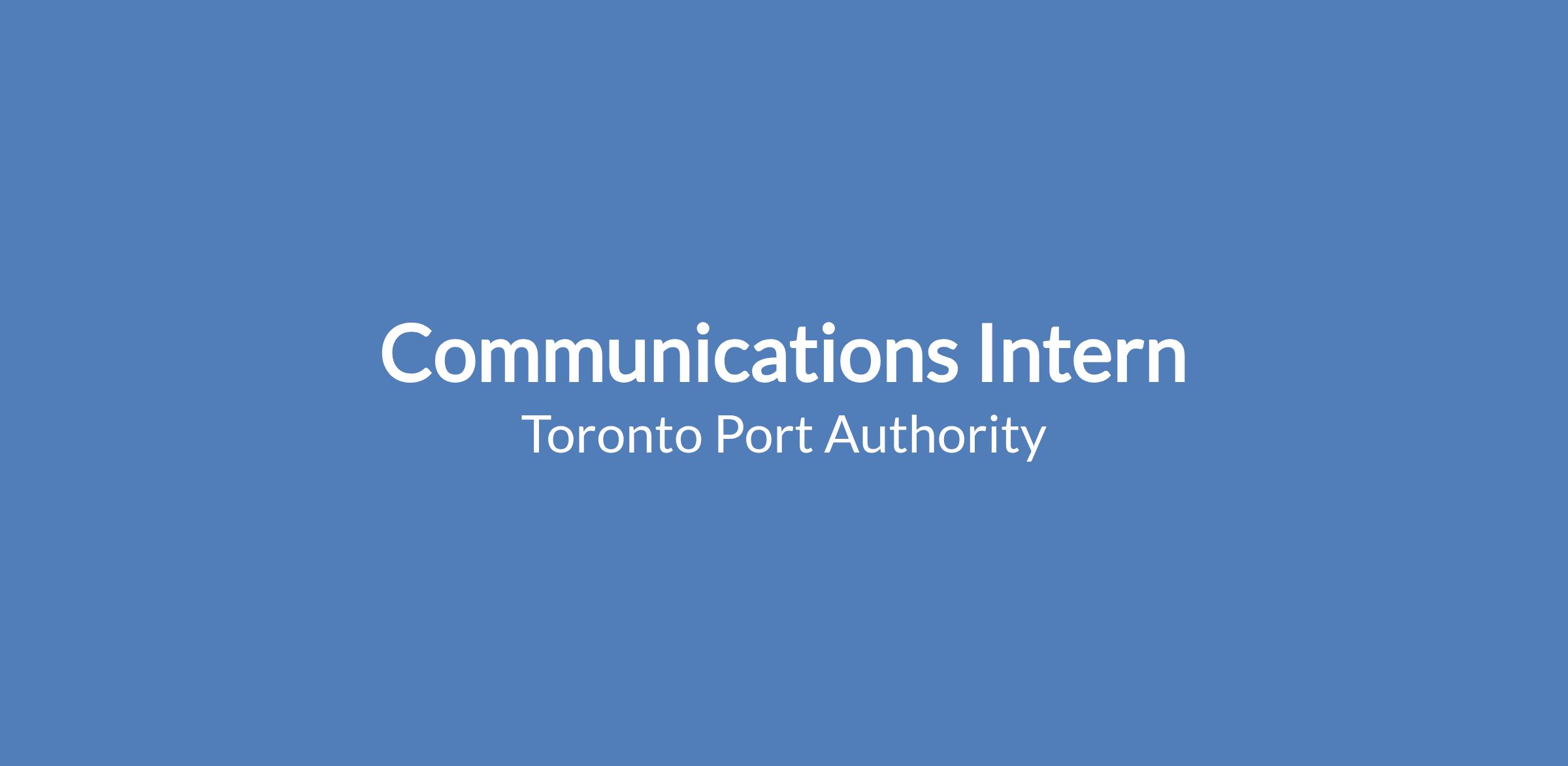 The Communications internship role consists of supporting the coordination and implementation of internal and external communications for the Toronto Port Authority. The role requires an enthusiastic and capable student with an interest in communications and event planning, website management, social media and writing. It also requires someone with a strong customer-service orientation, diplomacy and tact to work with external groups – including social media, stakeholders and members of the public.