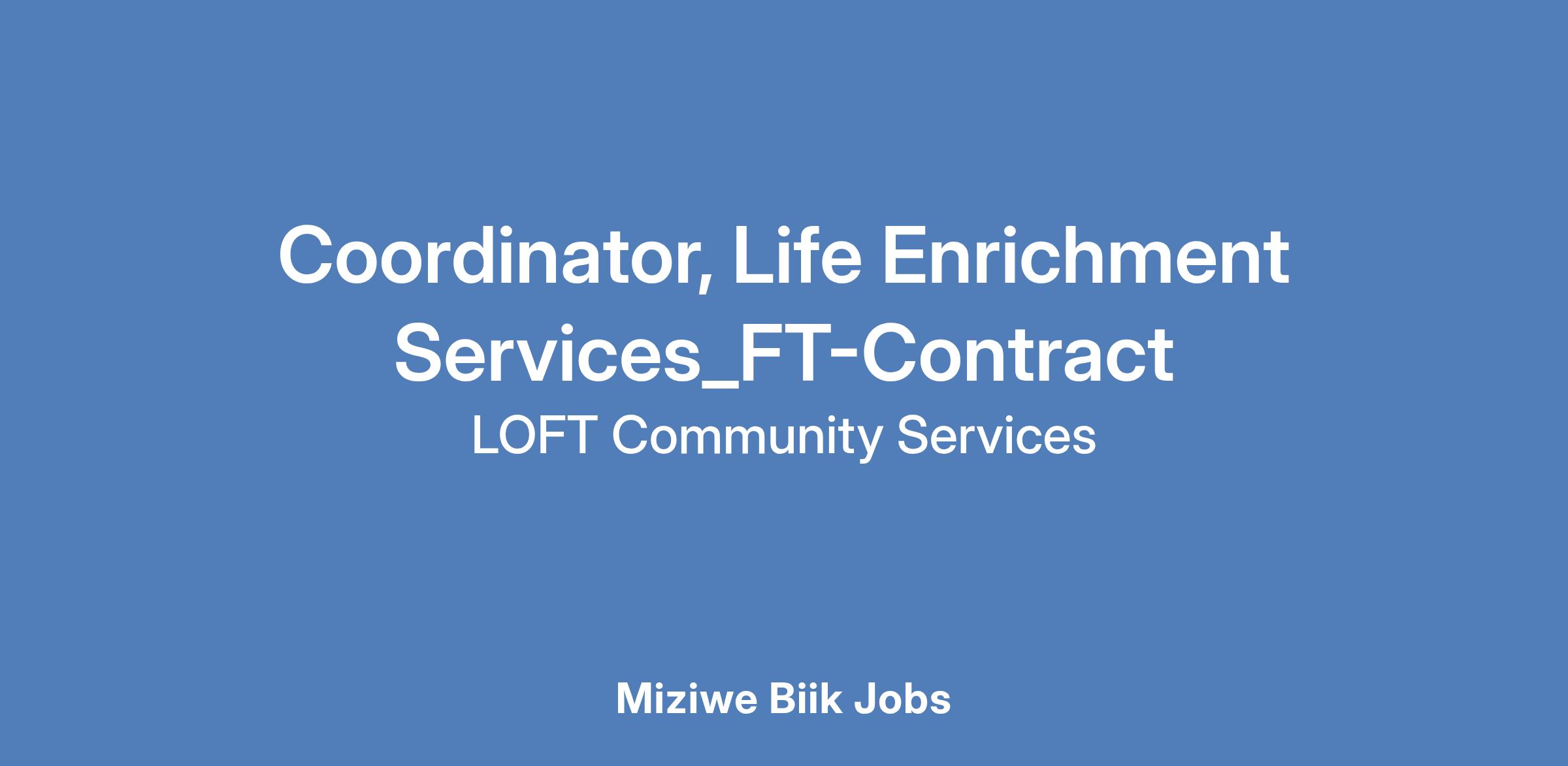 To help fulfill its mission, LOFT is hiring a Full-time Contract Coordinator, Life Enrichment Services.