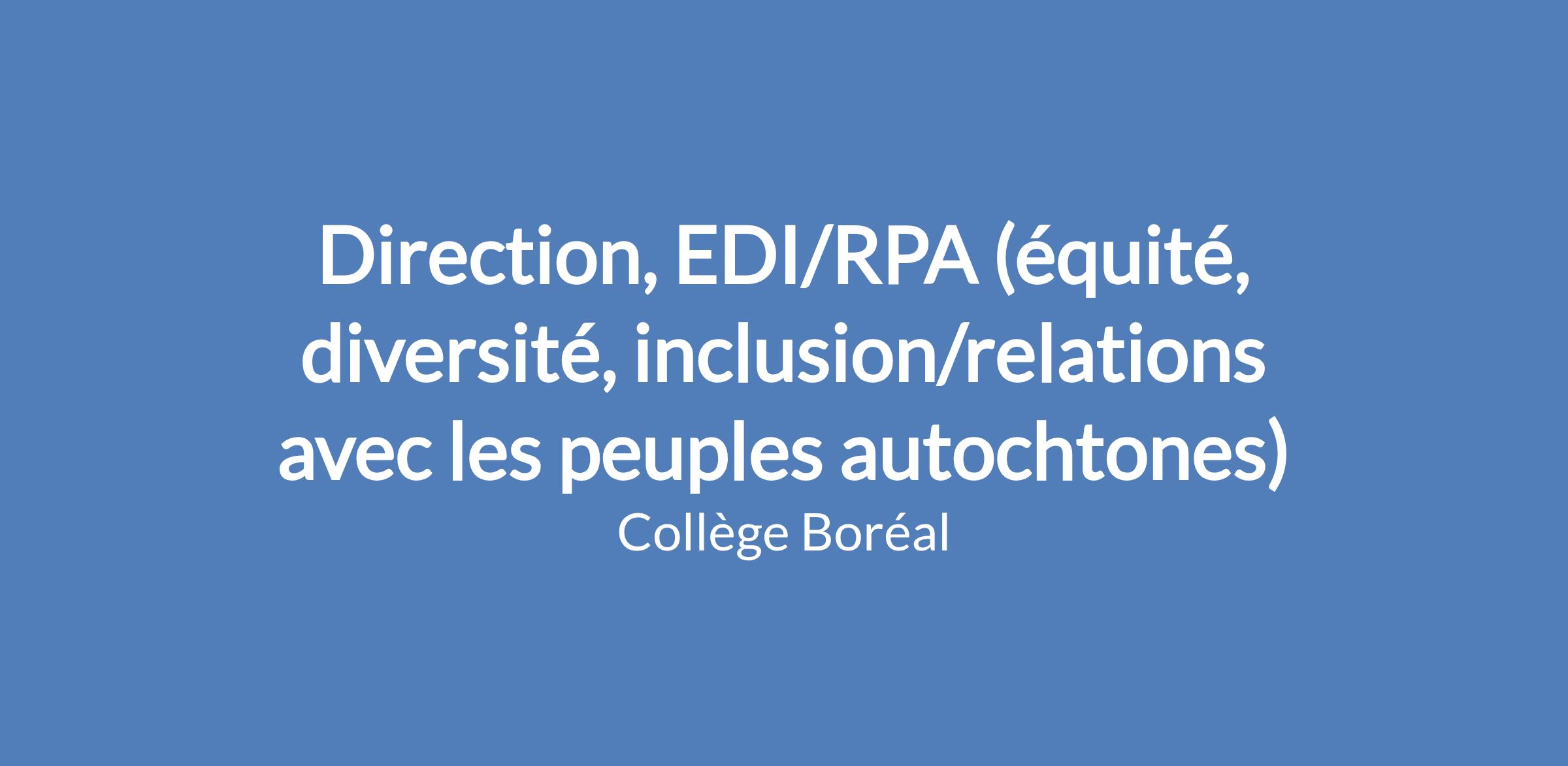 - Diriger ou soutenir des initiatives ou des projets relatifs à l’EDI/RPA à l’échelle du Collège.