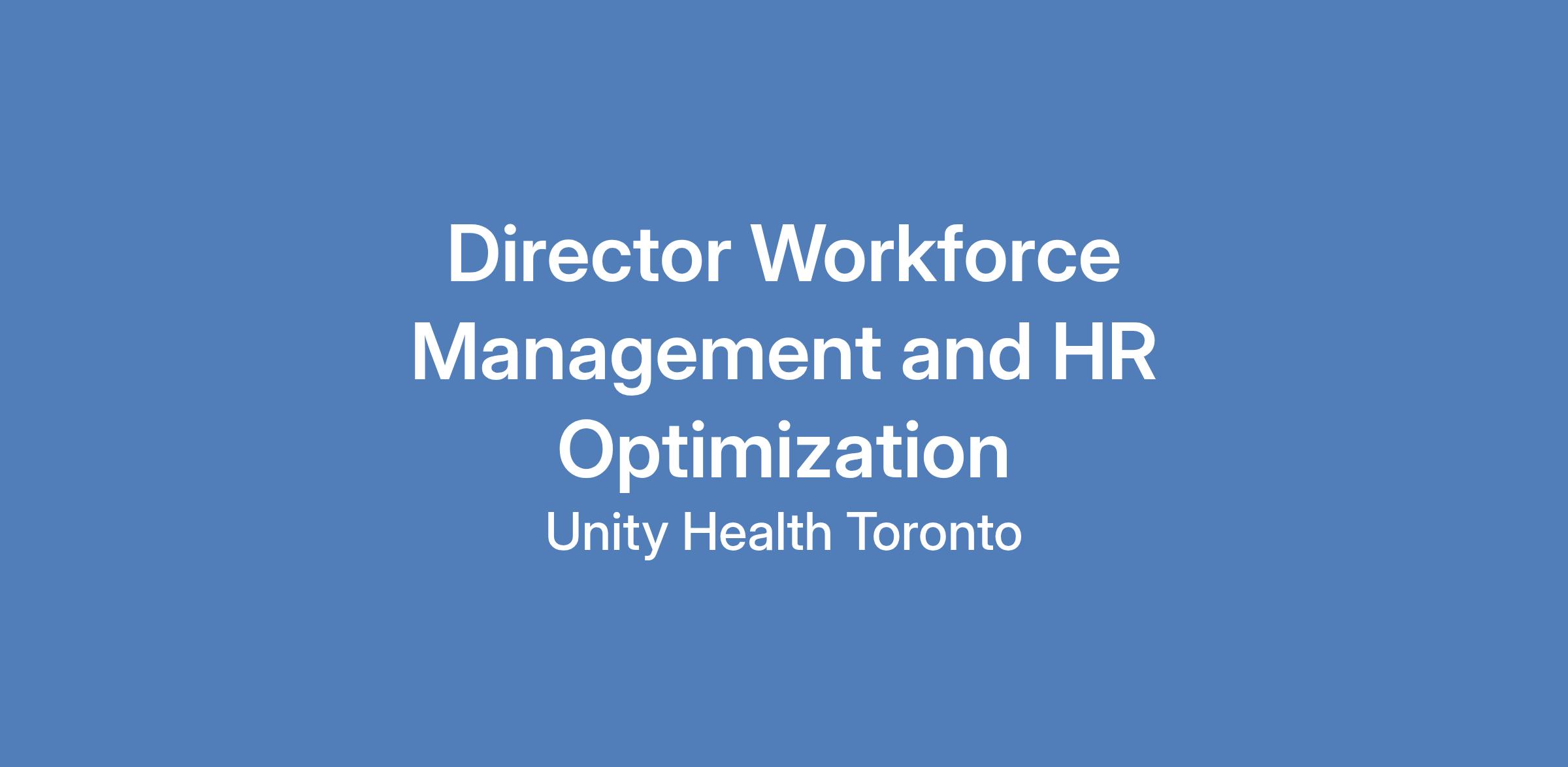 The Director of Workforce Management & HR Optimization is a strategic leader responsible for advancing enterprise-wide workforce planning, scheduling, analytics, and human capital optimization across a complex, heavily unionized, multi-site healthcare environment. The key accountabilities for his role in its initial stages will be to develop and lead the enterprise-wide project to implement workforce management, which includes building the organizational operating model, support schedule optimization and implementation of a digital scheduling and time and attendance platform. The Director will assemble and lead the project implementation team and ensure that key milestones are met while maintaining strong change management practices. The Director will support the organization to take a broad strategic view of digital enhancements for human capital management to help facilitate decision-making about implementation of complimentary functionality of the human capital management system with a view to system efficiency and value generation for the entity.