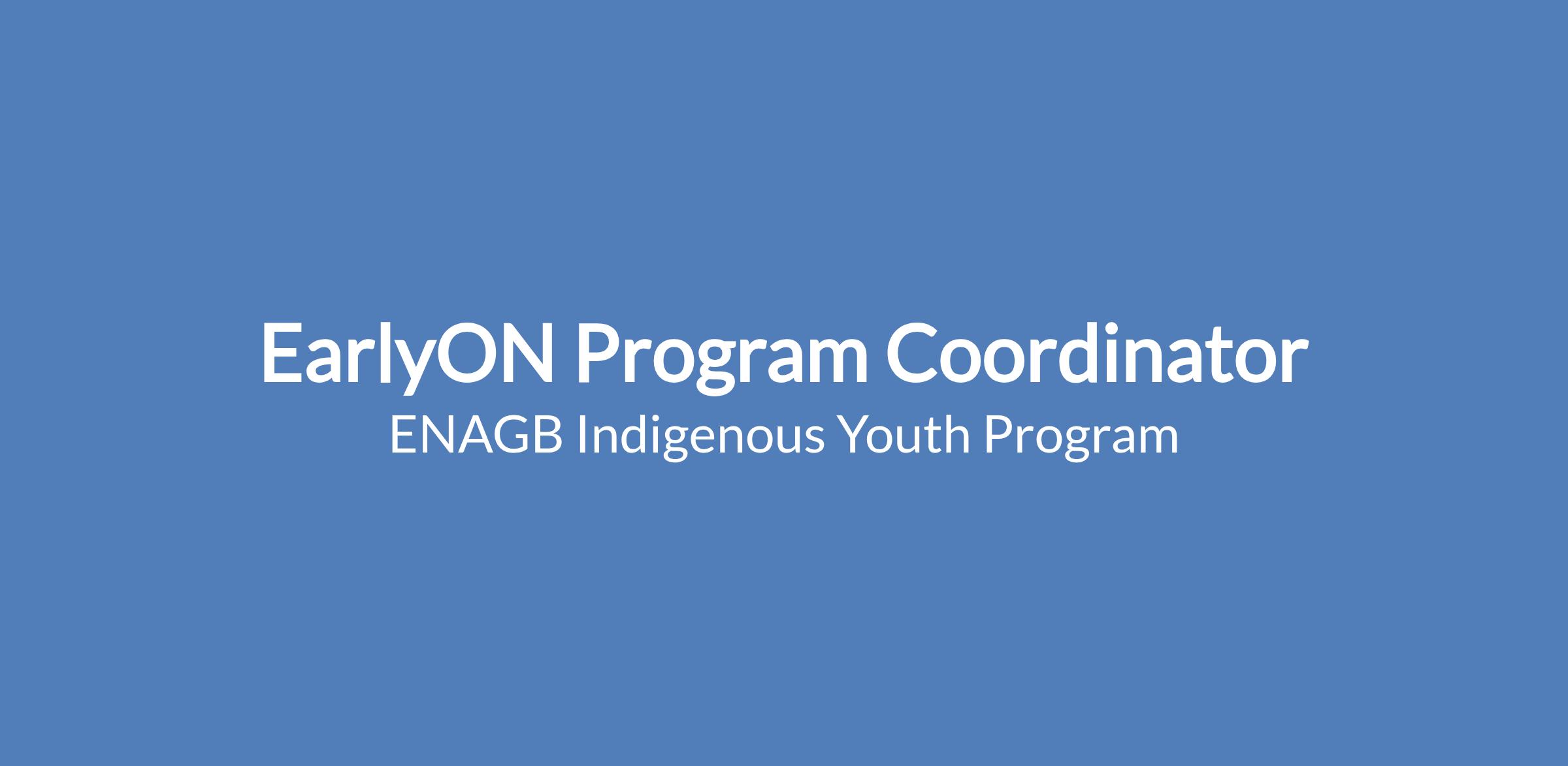 Please submit your Cover letter and Resume with the subject line as EarlyON Program Coordinator via email to Jobs@enagb-iya.ca