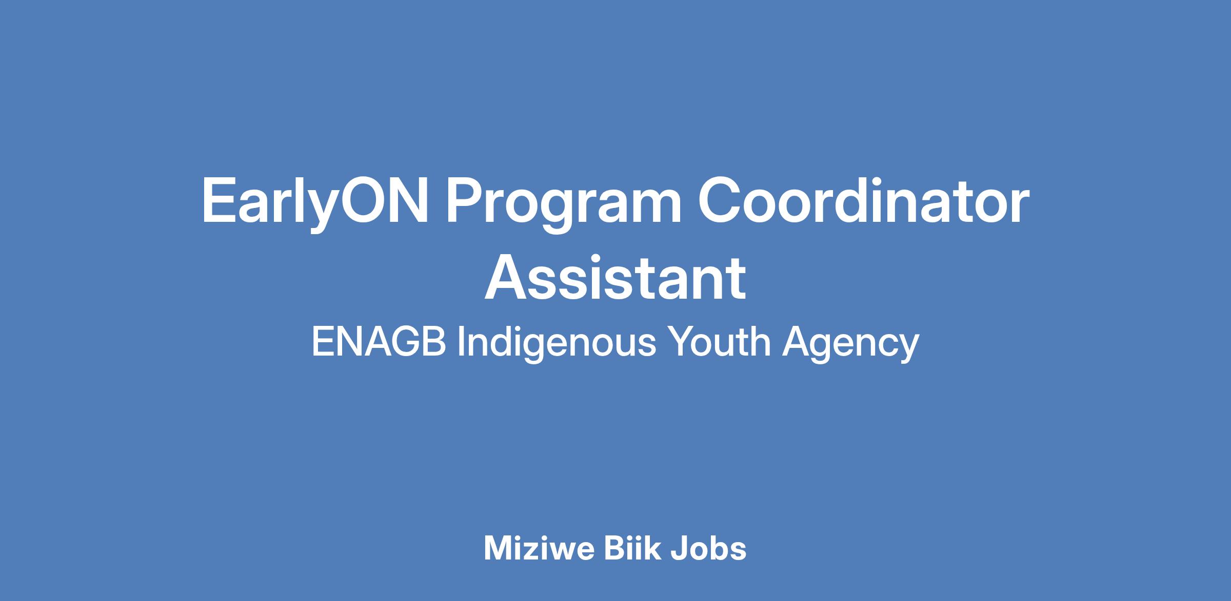 Please submit your Cover letter and Resume via email to Jobs@enagb-iya.ca with the Subject as EarlyON Program Coordinator Assistant