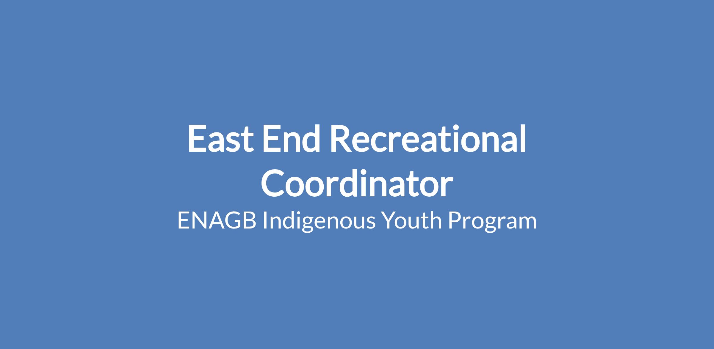Please submit your Cover letter and Resume with subject line as East End Recreational Coordinator via email to Jobs@enagb-iya.ca