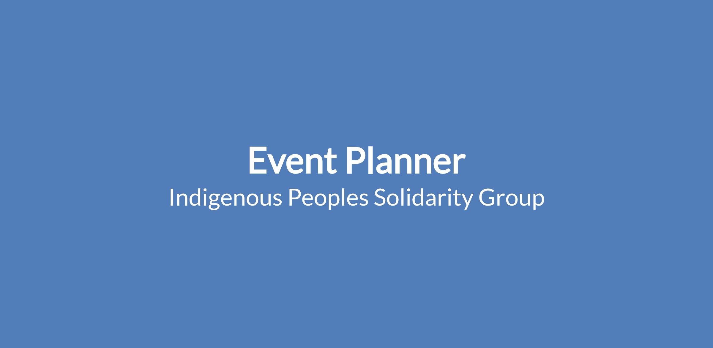 Together with the Indigenous Peoples Solidarity Group Co-Lead and other volunteers, the Event Planner will: