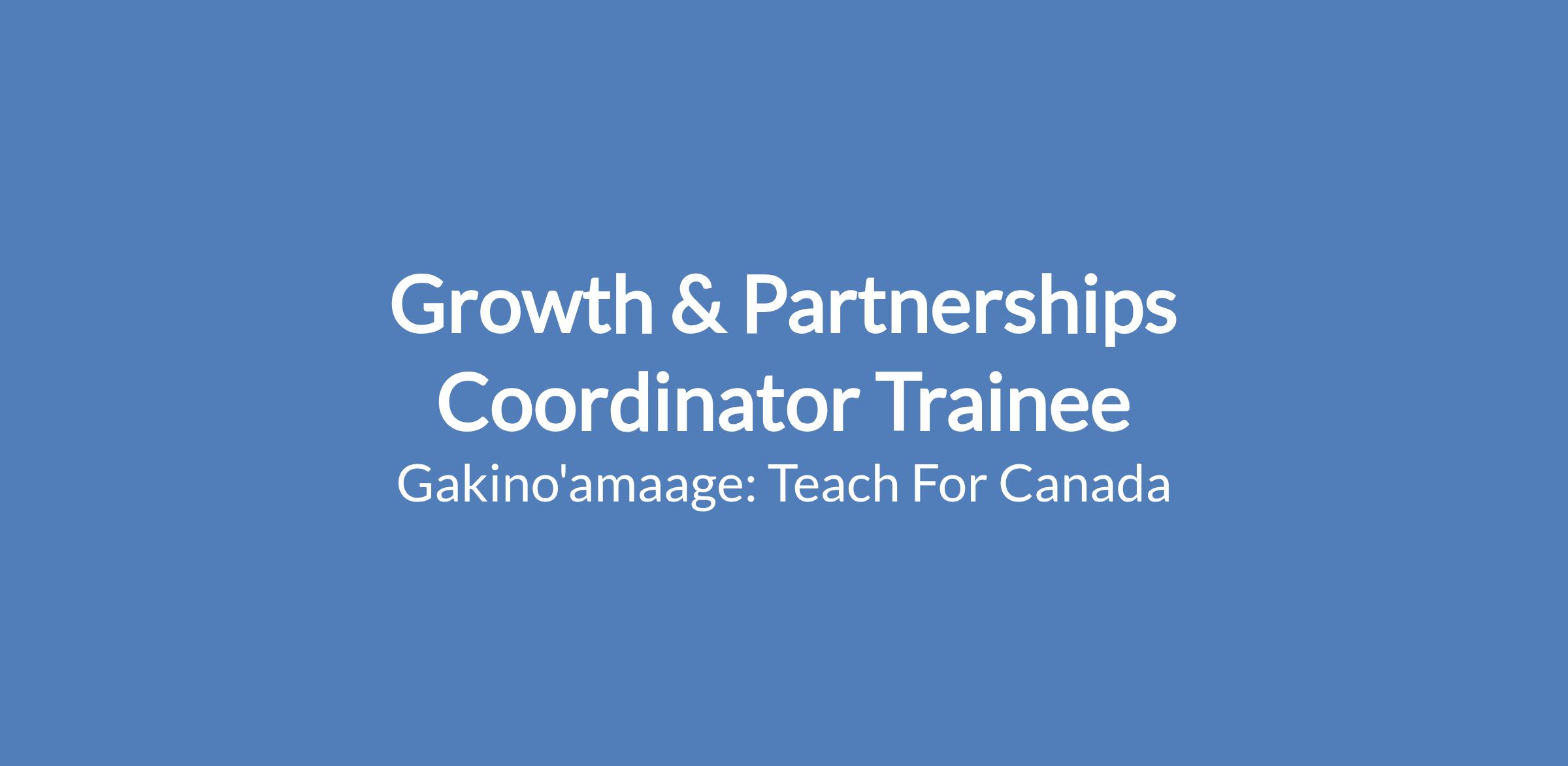 Gakino'amaage: Teach For Canada is an equal opportunity employer and is committed to building a diverse and inclusive team. As an organization that works with First Nations, we value Indigenous perspectives in the workplace and strongly encourage Indigenous candidates to apply.