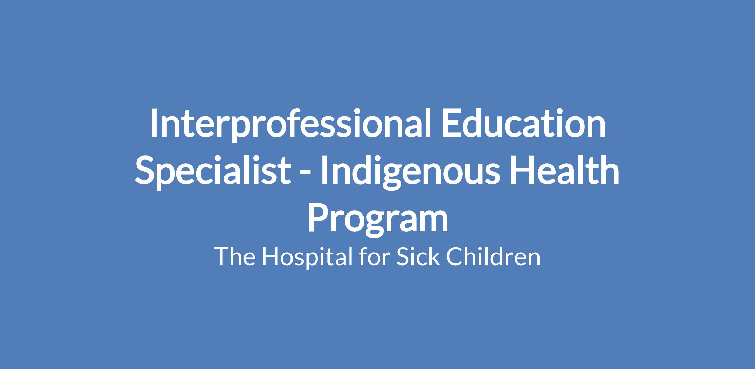 SickKids is embarking on strategic work to better understand and support the unique needs of Indigenous patients, caregivers, students, trainees and staff. The Interprofessional Education Specialist (IES) - Indigenous Health Program will co-develop and implement organization-wide Indigenous cultural safety educational opportunities.