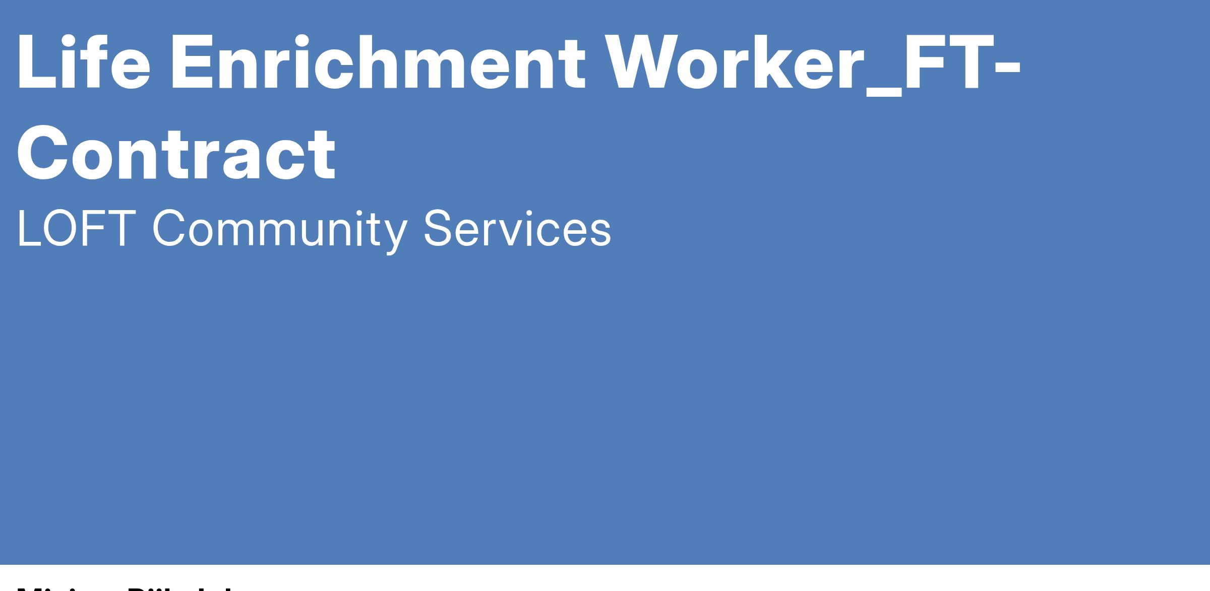 To help fulfill its mission, LOFT is hiring a Full Time Contract Life Enrichment Worker.