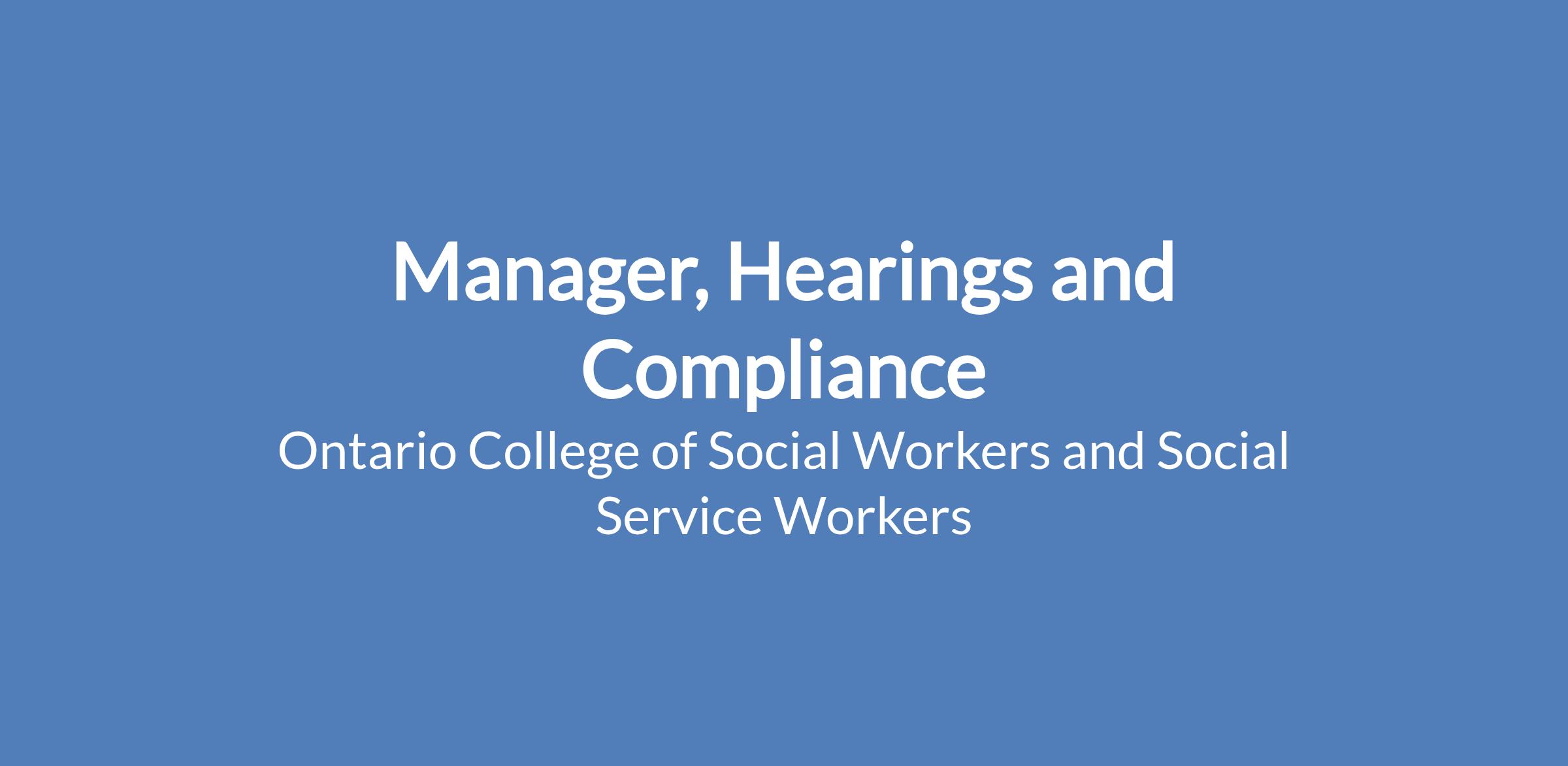 If you require Code-protected accommodation at any time during the recruitment process or if you are unable to apply to this position due to a requirement, email us at accessibility@ocswssw.org with subject line “Manager, Hearings and Compliance” or call 877-828-9380 x207.