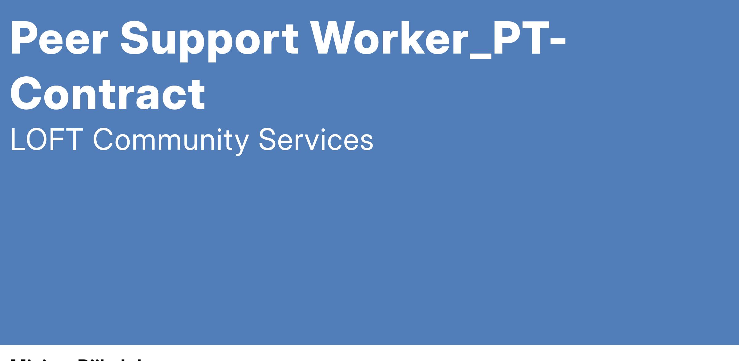 To help fulfill its mission, LOFT is hiring a Part-time Contract Peer Support Worker.