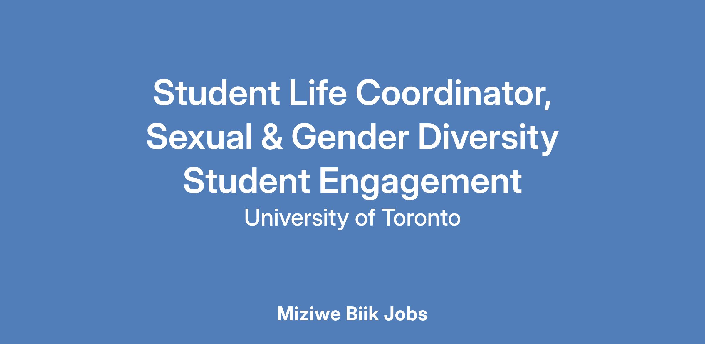 As the Student Life Coordinator, Sexual & Gender Diversity Student Engagement, your role will consist of developing, coordinating and evaluating thedepartment’s prominent community-engaged co-curricular experiential learning opportunity, with an emphasis on 2SLGBTQ+ student development and 2SLGBTQ+ student success. This will involve fostering an open and inclusive world view environment; organizing and facilitating student development workshops; recruiting and training work-study students; and developing innovative programming that celebrates the 2SLGBTQ+ identifying community present at the St. George campus. Your work will involve extensive partnerships and communication with campus, tri-campus stakeholders and external community partners.