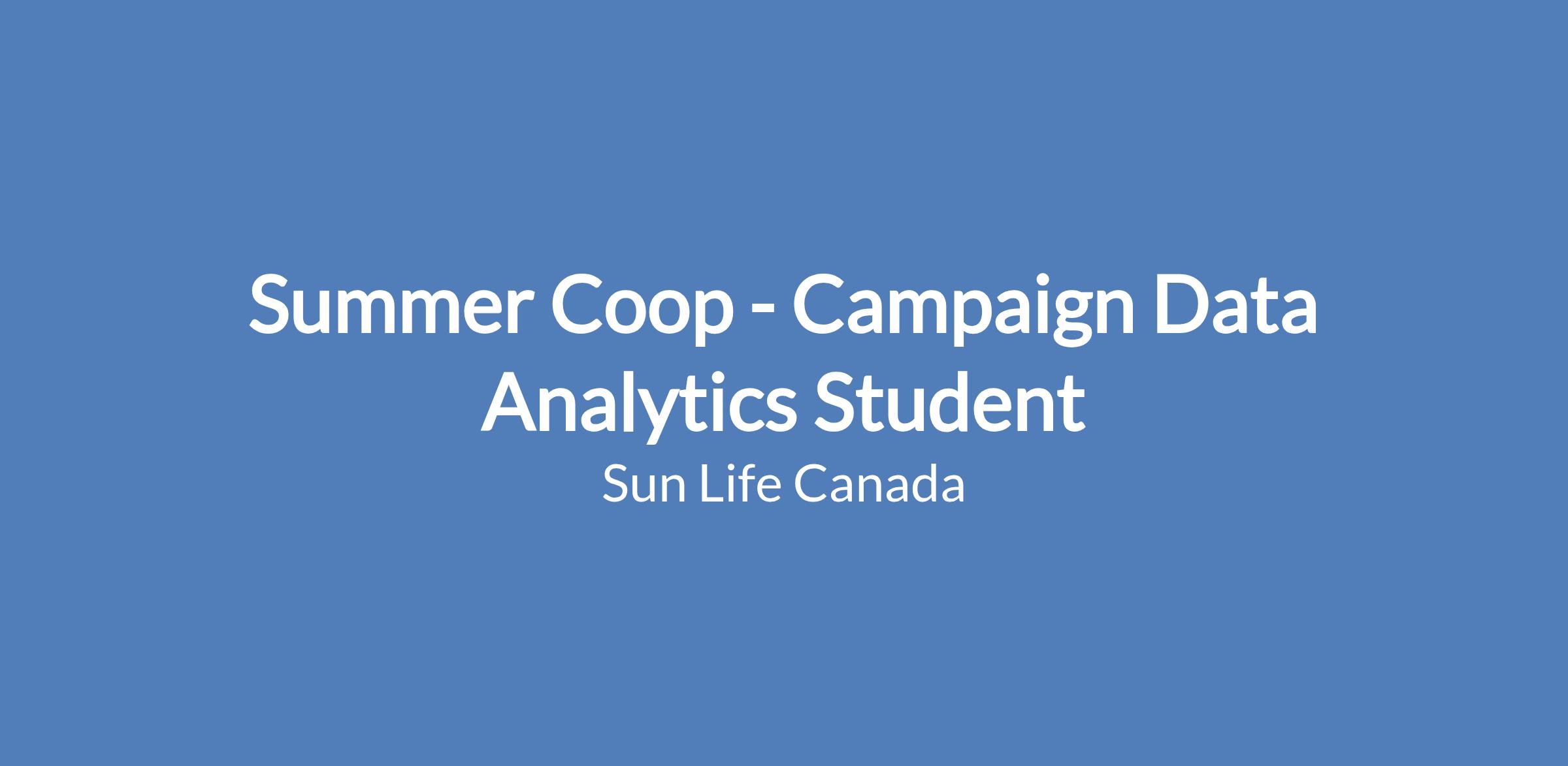 Join a team that is transforming data and analytics at Sun Life Financial (SLF) Canada. Sun Life's Client Experience Office (CXO) Analytics area is rapidly enhancing its campaign design and data integration capability with new tools and fresh talent. As a Campaign Data Analytics Student, you will support our team in delivering end-to-end campaign solutions while gaining hands-on experience in digital marketing analytics, testing, and marketing technology modernization.