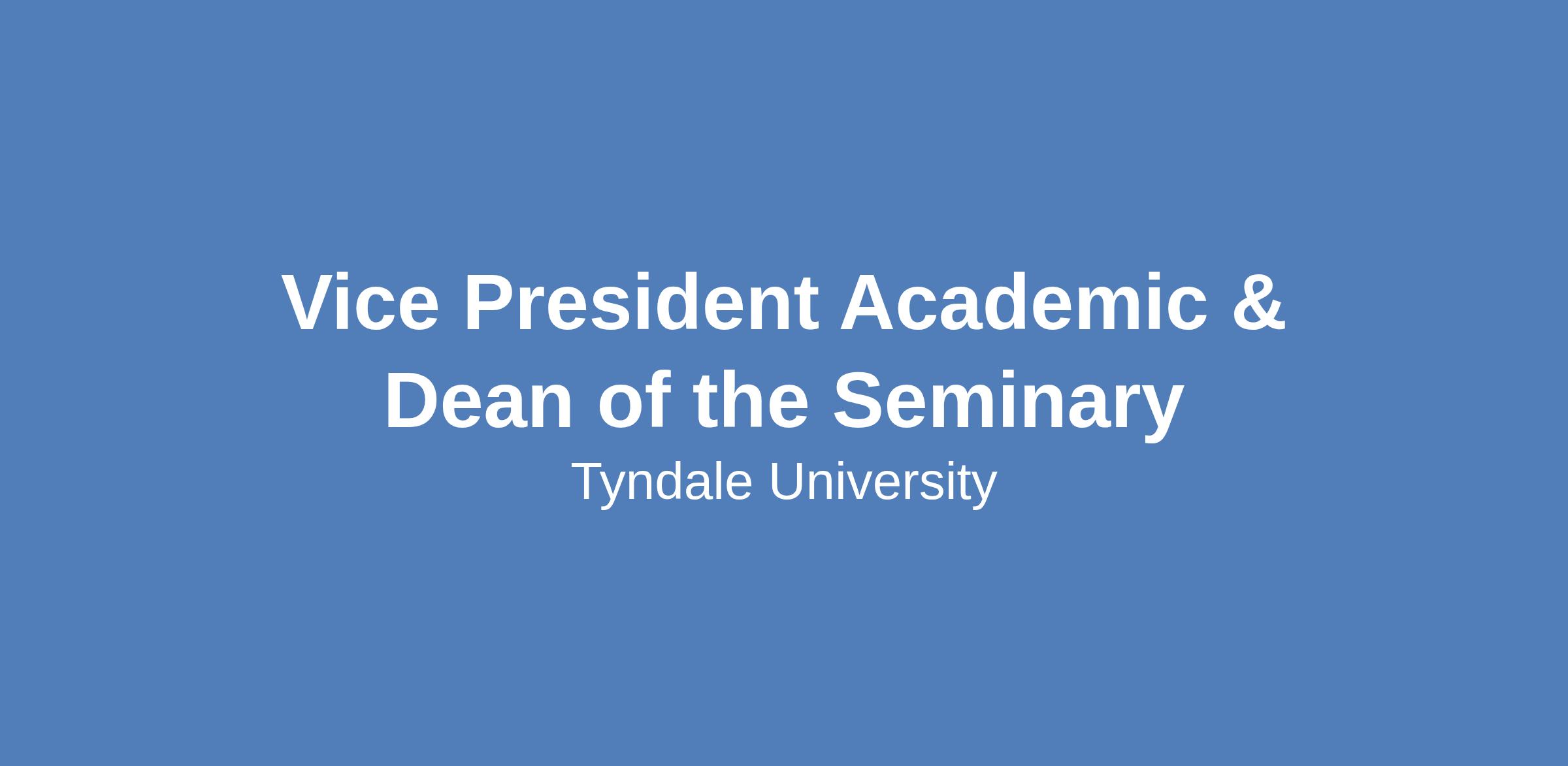 Tyndale University invites inquiries and applications for the position of Vice President, Academic & Dean of the Seminary.