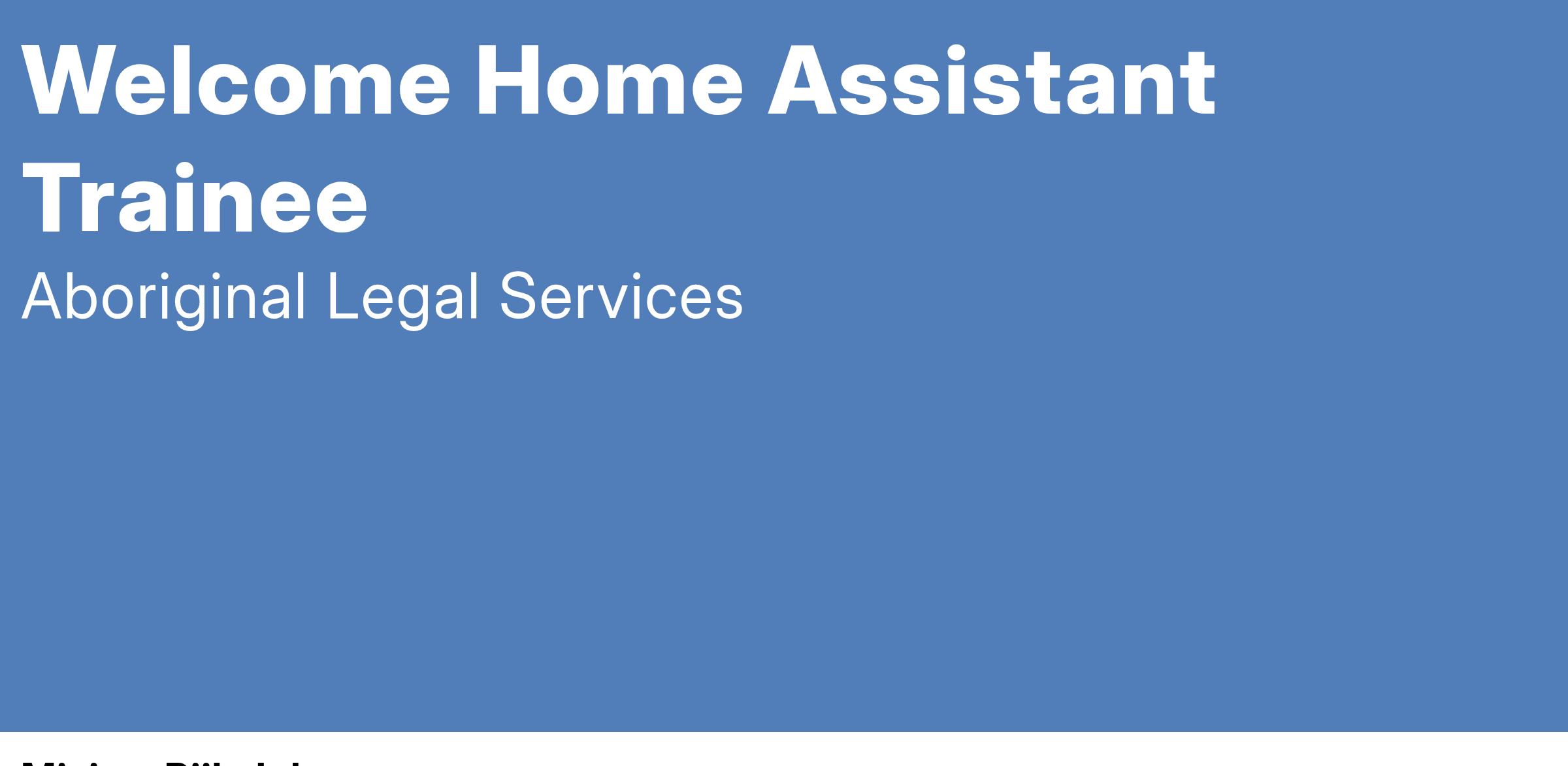 To apply to this job posting, please submit your cover letter and resume with “Welcome Home Assistant Trainee” in the subject line to hrgeneral@aboriginallegal.ca or fax it to (416) 408-1568.